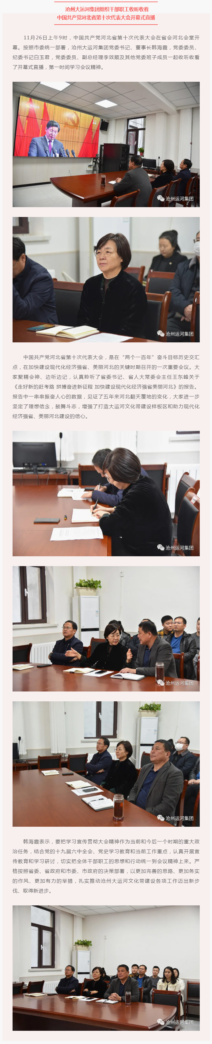 滄州大運(yùn)河集團(tuán)組織干部職工收聽收看中國共產(chǎn)黨河北省第十次代表大會開幕式直播